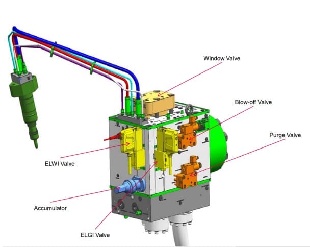(배기 밸브/실린더 커버/LGIV/가스 분배기 블록 조립/이중 벽 파이프/냉각 재킷 포함)